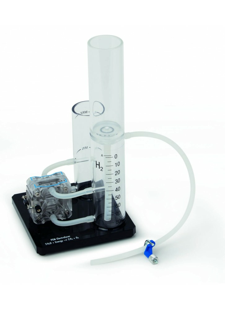 De Double Electrolyzer Kit is een Double-Cell PEM Electrolyzer met watertanks, waterstof- en zuurstofopslagtanks.